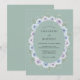 Este design apresenta um fundo suave verde sage adornado com um arranjo botânico de flores em aquarela em tons de azul pervinca e lavanda. Peônias pintadas e ranúnculos delicados são acentuados por minúsculas flores brancas e folhagens tênues. A paleta evoca uma atmosfera serena de primavera, perfeita para uma cerimônia romântica ao ar livre ou um evento sofisticado à tarde.