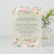 Elegante e romântico convite de casamento com floral em tons de rosa água e folhas de sage verde com detalhes em dourado. Entre em contato para obter ajuda com personalização ou para solicitar produtos correspondentes ou coordenados.