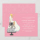 Convite Noiva Rosa Radiante sobre Bolo de Casamento