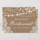 Convite Noiva Rústica Luzes de Renda e Tecido de Sacaria
