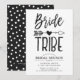 Um convite de café da manhã de noiva personalizado para seu grupo de amigas de confiança. Ele apresenta um visual clássico com tema preto e branco com as palavras "bande de noiva" escritas em uma fonte estilo manuscrito. Entre as duas palavras há uma flecha tribal perfurando um coração.