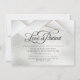 Elegantes Facetas Angulares Frost Opal - Design opalescente prateado claro com janelas facetadas emolduradas a ouro angular. O amor é Paciente em caligrafia cursiva - Se você já enviou os convites e teve que pausar inesperadamente a data do seu grande evento, envie-os aos seus convidados.