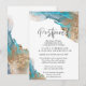 Convite Noivado Adiado Teal e Dourado Abstrato