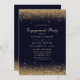 Convite Noivado Azul Moderno do Marinho de Confetti Dourad