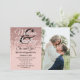 Glamoroso, chic e elegante faux imprimiram brilho rosa dourado cintilante em um fundo cor-de-rosa pincelado, cartões de anúncio de noivado. Este design clássico e sofisticado é perfeito para o casal clássico, de tendências e na moda de casamentos. Personalize com sua própria mensagem na frente e um monograma personalizado inicial no verso. Todas as impressão de fotos.