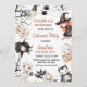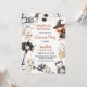 Crianças Negras de Halloween Festas de Festas de Figurino Aniversário Convite Cute neutro de gênero no Dia das Bruxas com vários filhos em fantasias de Halloween, taco, abóbora, lua, estrelas em branco, preto e marrom. ideal para uma festa de aniversário de crianças no Dia das Bruxas.