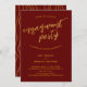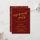 Esta distinção arrojada e simples deve-se à fonte moderna e casual escrita à mão usada para frases de sotaque e ao padrão de ondas soltas colocado sobre o fundo. As ondas são feitas para evocar os festejos. Nesta peça, a letra de escrita manual foi usada para criar um gráfico com as palavras "festa de noivado". Tanto o texto do cabeçalho como o padrão de fundo foram embelezados com um padrão de folha de ouro. Use os campos modelo para adicionar seus detalhes pessoais e fazer deste design festivo seu. O fundo vermelho escuro e arborizado pode ser mudado para qualquer cor que você preferir. Por favor, responda a quaisquer solicitações especiais ou personalize a assistência. 100 //