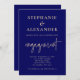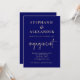 Convite Noivado de script Dourado azul de Marinho mínimo