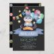 O convite de aniversário deste menino bonito mostra um coelho coelho olhando do chapéu de um mágico com estrelas de ouro falsas/falsas, bandeiras de bunting e balões coloridos em aquarela em um fundo de cinza escura. O verso apresenta um fundo preto com bolinhas. Personalize para suas necessidades. Você pode encontrar mais produtos correspondentes na minha loja.