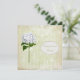 Os convites elegantes da festa de noivado com um frasco de pedreiro de vidro branco bonito e uma ilustração branca do vintage do hydrangea florescem em uma colagem antiga à moda do chique com as decorações ornamentado brancas bonitas, uma libélula, e escrita desvanecida em um teste padrão verde pálido à moda do harlequin. No reverso do convida é pérolas brancas impressas glamoroso e esteira do laço com texto para que você personalize com seus detalhes do evento. Moderno elegante, na moda, elegante convida perfeito para o primavera, o verão, a queda/outono e os eventos do inverno. Todo o texto pode facilmente ser personalizado para encontrar suas necessidades e você pode mudar o estilo, a cor e o tamanho de pia batismal da pia batismal se você deseja. Se você precisa algum auxílio que personaliza seu produto me contacta por favor através de minha loja e eu estarei feliz ajudar. Esteira da pérola pelo ©Hazel Kinvig-Paul www.design-a-dream.co.
