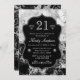 Convite Noivado do Mármore Negro, Branco e Prateado Modern