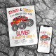 Este convite de festas divertido é perfeito para a festa de aniversário Monster Truck do seu filho.