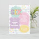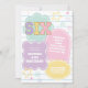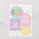 convite de aniversário do pastel varsity preppy patch com corações, margaridas, bola de disco e fundo do verificador.