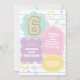 convite de aniversário do pastel varsity preppy patch com corações, margaridas, bola de disco e fundo do verificador.