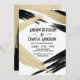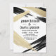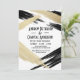 Este convite de festa de noivado de casamento glam e moderno é perfeito para o casal de na moda e tendências. Representa um padrão de bruxos dourados impresso falso e desliza bruxos pretos sobre um padrão branco. Nas costas há um grande e falso golpe pintado a ouro numa cor preta escura. É mínimo, artístico, chico, artístico e bonito!