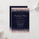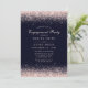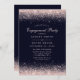 Rosa Dourado Confetti Marinho Blue Modern Convite à Festa de noivado. Linda e simples confete de ouro rosa de vidro de vintage contra um fundo azul marinho. Este design moderno personalizado pode ser facilmente personalizado com seus próprios detalhes.