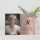 Rosa Dusty, Dourado, preto, simples, foto, elegante, feminina, adulta, tipografia, brilho, Festa de aniversário 90 de aquarela, 90 convites. Personalize-o com seus detalhes.