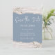 Convites de noivado em madeira de bétula azul empoeirado para casamento. Gráficos de ramos em dourado falso. Realce de fonte de script com fonte de nome serif legível. Fácil de ajustar às necessidades do seu casamento. Casamentos ao ar livre, casamentos no quintal, tema de casamento azul empoeirado.