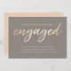 Este anúncio de noivado elegante e simples apresenta uma fonte falso de script de folha de papel em uma paleta de cores de cinza bonito e ouro rosa.