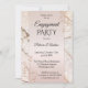 Um convite romântico de festa de noivado com espirais florais de ouro rosa num cor-de-rosa pincelado com fundo de mármore com faíscas de luz festivas.