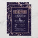 Disposição elegante, chique e impressão rosa de ouro fino e pintura em marinho azul, convites de festa de noivado. Este design clássico e sofisticado é perfeito para o casal de casamentos clássico, moderno e na moda. Personalize com sua própria mensagem na frente e um monograma personalizado na parte de trás. Todas as impressão design.