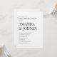 Celebre seu amor com elegância eterno. Este convite de festa de noivado ultra-minimalista apresenta uma tipografia negra limpa num fundo branco nítido, sofisticação e simplicidade perfeitamente equilibradas. Com nomes ousados de serifas empilhados para impacto e detalhes refinados de sans-serif, esse design é ideal para casais modernos que apreciam o luxo subestimado. Totalmente personalizável para seus detalhes de evento, este convite combina lindamente com temas de eventos em preto e branco, texturas de linho e sinalização acrílica.