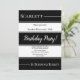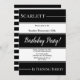 Este elegante convite de Aniversário preto e branco é perfeito para um Aniversário moderno. O simples design apresenta uma caligrafia elegante em preto e branco sobre um fundo listrado preto e branco.