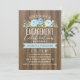 Este Convite para na moda e Festa de noivado rústica apresenta lindas flores aquáticas e uma mistura de tipografia moderna, tudo sobre um fundo de madeira de moda. Envie um convite aos seus convidados que não se esquecerão! Para um convite ainda mais memorável, selecione uma forma recortada, um papel texturizado ou um papel com espessura dupla.