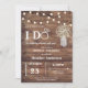 Eu faço convite de noivado casual. Com fundo de madeira de celeiro, luzes de corda e bebê respirando em jarra de mason.