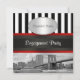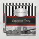 Ponte do Brooklyn no Skyline NYC, Boat Invitation Suite - Black White Stripe/Red Black Ribbon - Convite para Festa de noivado Elegante, na moda, Convites personalizáveis de chic e acessórios com vista para East River da ponte Nova Iorque Brooklyn e do prédio municipal com passagem de barco. Ele também apresenta um padrão de faixa preto e branco, uma fita preta e vermelha e uma etiqueta de gradiente branco com sua escolha de uma moldura de pérola cor prateada ou dourada. A imagem está em preto e branco. Este produto faz parte de um conjunto de designs correspondentes que são facilmente personalizáveis para muitas ocasiões e eventos. Se você precisar de placas RSVP separadas, Obrigado, Notas, Carimbos, ímanes, etiquetas de favorecimento, cartões de escolta, etiquetas de vinho, menus, programas de eventos ou outros acessórios, por favor veja nossas outras listas. Se você não vir um produto correspondente ao qual você está interessado, ou gostaria de ver esse design em cores diferentes, com elementos de outros designs, ou com fotos diferentes do NYCisMyMuse que você vê em nossa loja, entre em contato conosco e ficaremos felizes em personalizar um design para você! Observe que este é um design gráfico e não contém tecidos, metais, gemas ou relevo. 2012 ©NYCisMyMuse