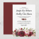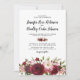 Convites de casamento rústicos elegantes com um fundo branco simples que pode ser alterado para qualquer cor, uma variedade de flores de água-marinha em marsala, burgundy e rosa beije, e um modelo de casamento moderno.