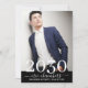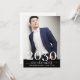Um ousado ano de aulas de graduação em branco, com uma foto de formatura moderna em chic com convite de festas de sobreposição de nome de script. Adicione suas fotos de formatura criativa. Adequado para a faculdade ou segundo grau. Um estilo criativo individualista.
