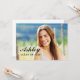 Torne-o pessoal com este convite de festa de formatura elegante, apresentando um retrato completo do formando com o nome do graduado em letra cursiva preta e o ano de conclusão na frente. O verso mantém todos os detalhes da celebração lindamente organizados com uma mistura refinada de tipografia cursiva e serifa em um fundo creme limpo. O texto totalmente personalizável em ambos os lados torna a personalização sem esforço.