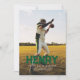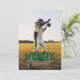 Com um nome em negrito em verde em uma única foto vertical, este anúncio de formatura é perfeito para um atleta que se forma. Com uma fonte esportiva no estilo de carta de atleta, seu design pode ser personalizado com todos os detalhes do formando na frente. O verso inclui espaço para duas fotos adicionais, bem como texto que pode ser usado para detalhes do convite para a festa de formatura, planos futuros ou qualquer outra coisa que você queira. Com seu estilo esportivo e atlético, este anúncio de formatura e convite é ótimo para meninos e meninas e funciona com uma variedade de fotos.