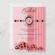 Parabéns no seu primeiro aniversário! Convidado para a sua ocasião especial. Este adorável convite apresenta um design de ladybug divertido com o nome, a idade e os detalhes da festa do seu filho. Cores: preto, vermelho e rosa. Amostra: Elizabeth está virando 1 Por favor junte-se a nós. Espero que este convite ajude a tornar o seu primeiro aniversário extra especial!