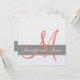 Convite cinzento, branco e alaranjado do casamento com seus monograma e nomes em um design simples, contudo elegante. © de ELKE CLARKE para a galeria do monograma. Mostrado no papel metálico do gelo