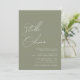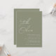 Nomes de caligrafia verde sabedoria minimalista e simples em tipografia moderna convite de casamento com código QR no verso do convite.