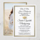 Compartilhe a alegria de um segundo grau ou formandos e convide a família e os amigos a celebrarem com estes anúncios personalizados de convites de festas branco, preto e ouro. (DICA DE IMAGEM: Uma maneira fácil de centralizar uma imagem exatamente como você deseja é recortá-la antes de carregá-la no site do Zazzle.) Este modelo formal inclui nomes de pais e formandos, assim como qualquer informação de sua escolha, como detalhes de celebração, honras especiais, título de grau, citação de inspiração favorita, novo endereço de formando, planos educacionais futuros ou posição de emprego. Toda a formulação é simples de personalizar. Design apresenta um fundo branco moderno, borda e boné de formatura de folha de ouro falsa, caligrafia elegante de script branco, tipografia tradicional e uma foto de sua escolha, como uma fotografia ou uma imagem de mais velho da cerimônia inicial. Observe que o ouro é impresso a cor, não a folha metálica. Estes cartões de anúncio de graduação são uma maneira moderna e chique de compartilhar sua celebração especial com a família e os amigos. Parabéns ao formando!