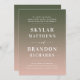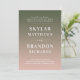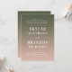 Nomes De Negrito Simples Esfregam Convites De Casamento De Mão Rosa E Verde. Este design moderno de convite de casamento é mínimo e elegante, com um simples apagão verde e texto ousado destacando os nomes dos casais. Mostrada na Coluna de Cores de Casamento Rosa e Verde com: Rosa Esbranquiçado e Verde Monstera. Também apresenta um simples monograma no verso. A coleção de casamento do Ombre Bold Names é certamente que torna o seu casamento memorável e bonito! Para ver mais, procure as coleções de casamento de 2022 da Chic Paperie para ver todas as tendências de designs e cores de casamento para este ano.