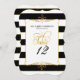 Se você está procurando uma solução elegante e barata para os números das mesas na recepção do seu casamento, chá de noiva ou outro evento formal, esses cartões são um ótimo design. Este design tem o nome do casal recém-casado e a data do casamento no topo (você pode colocar qualquer informação que desejar se for um evento diferente, como uma festa de aniversário, evento empresarial ou outro evento de gala). Você pode personalizar quantas mesas precisar - basta clicar na área do modelo, digitar o número da sua mesa (ou nome da mesa) e colocá-lo no carrinho de compras. Repita quantas vezes for necessário. Um fundo moderno, preto e branco com listras largas e uma fina borda dourada adicionada é combinado com um elemento de moldura de divisor de floreio desenhado à mão e uma arte de palavra de tipografia de caligrafia "Mesa" com espirais elegantes em brilho dour