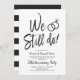 Um convite divertido e único com letras personalizadas especificamente para a festa de aniversário ou renovação de votos de casamento. Ele apresenta as palavras "Nós ainda fazemos" com anéis de casamento repousando acima. Abaixo disso há espaço para os detalhes da sua festa ou evento. No verso há listras pretas e brancas elegantes para complementar a frente.
