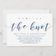 Tema azul-marinho moderno e sofisticado, cartão de convite de casamento furtivo (Nós Amarrámos). É perfeito para a sua celebração de casamento casual à beira do lago.
