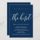 Linda Caligrafia Azul Simples Marinho Moderna, Anúncio de Elopemento de Casamento, Cartão de Convite (Nós amarramos o nó). Isto é perfeito para a sua recepção de casamento e festa de celebração de posto. Adicione seus detalhes em fontes / letras correspondentes. #TeeshaDerrick
