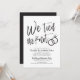 Depois do grande dia e da troca de alianças, convide seus convidados mais honrados para uma celebração. Este convite apresenta as palavras "Nós Amarrámos o Nó" em letras cursivas elegantes. Ao lado, há um par de alianças de casamento. Abaixo deste gráfico único, há um espaço para suas próprias palavras e informações para o seu evento pós-casamento.