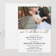 Anuncie aos seus amigos e familiares que vocês se casaram! E então convide-os para a celebração da recepção de casamento. "nós amarrámos o nó!" em escrita dourada. Personalize com sua foto e informações detalhadas para uma celebração pós-casamento