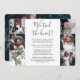 Convide familiares e amigos para uma recepção de casamento simplesmente elegante com este convite de colagem de 7 fotos moderno e sofisticado "nós nos casamos". Todo o texto é simples de personalizar para qualquer celebração de recepção, incluindo uma festa pós-fuga, cerimônia de renovação de votos, casamento sequencial, 1º aniversário, hora do coquetel ou jantar. Personalize-o para incluir os detalhes de sua escolha, como data do casamento, código de vestimenta, RSVP, site, etc. (DICA DE COLOCAÇÃO DE IMAGEM: Uma maneira fácil de centralizar uma foto exatamente como você deseja é cortá-la antes de fazer o upload para o site da Zazzle.) O design moderno minimalista preto e branco apresenta sete fotos do casal recém-casado, caligrafia de script manuscrita trendy e tipografia estilo máquina de escrever chic. Quer você tenha fugido devido à pandemia de covid ou reduzido para um casamento menor e mais íntimo, a festa do felizes para sempre ainda pode começar. Parabéns à