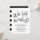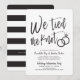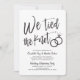 Depois do grande dia e da troca de alianças, convide seus convidados mais especiais para uma celebração. Este convite apresenta as palavras "Nós Amarrámos o Nó" em letras de caligrafia sofisticada. Ao lado, há um par de alianças de casamento. Abaixo deste gráfico exclusivo, há um espaço para suas próprias palavras e informações para o seu evento pós-casamento.