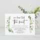 Moderno Script Preto, Tema de Jardim de Verão com Folhas verdes, cartão de convite de elopement de casamento (Nós demos o nó). É perfeito para a recepção de elopement de casamento / festa de celebração pós-casamento. Adicione seus detalhes em fonte / letra preta correspondente.