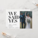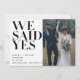 NÓS DISSEMOS SIM | 2 Convite de Recepção de Casamento com Foto - Este elegante anúncio de casamento em rosa e preto é uma ótima maneira de informar aos seus amigos e familiares que vocês fugiram para se casar, tiveram uma cerimônia secreta ou casamento privado e que desejam celebrar com eles em uma recepção após o casamento!