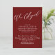 Você já se casou e agora é hora da sua grande celebração. Essa carta elegante e versátil poderia ser a solução ideal para você! Com uma fonte moderna de caligrafia de luxo, o cabeçalho diz "Nós Eloped" (Nós Elotizamos). Use os campos modelo para adicionar seus detalhes pessoais. E mude o fundo para qualquer cor que você preferir! 137 //